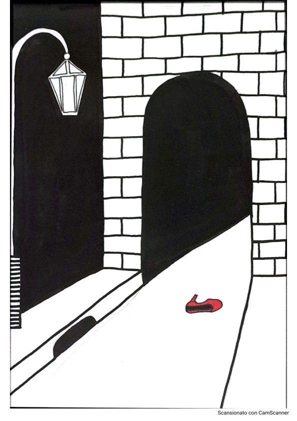 La ricorrenza di arcate di mattoni e l’estremo contrasto luce/ombra richiamano l’ambientazione minimalista e spesso notturna delle sue scenografie. Elementi isolati e fortemente simbolici, come la scarpa rossa o il coltello, agiscono, dal canto loro, come reperti di un’azione o come presagi di un evento imminente.